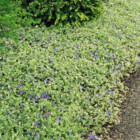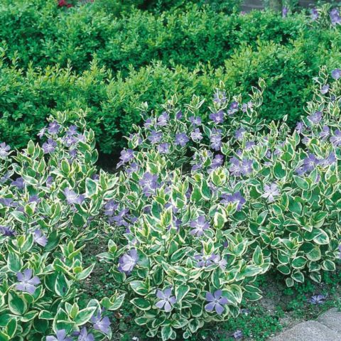 El bígaro grande Variegata es utilizado con éxito por los jardineros como planta de cobertura del suelo
