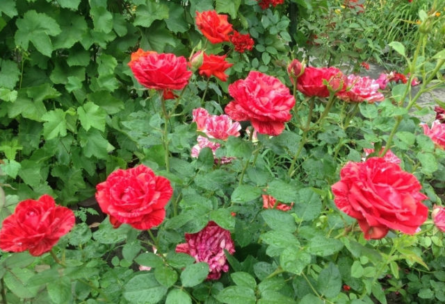 Se obtiene una combinación armoniosa si se planta Red Intuition junto a rosas blancas, té, crema y amarillo pálido.