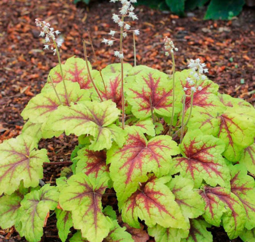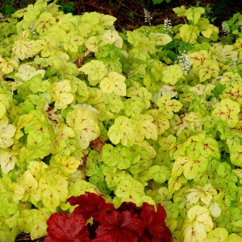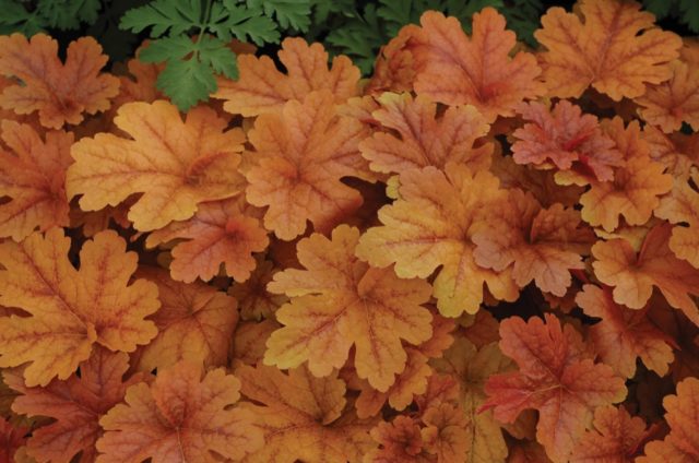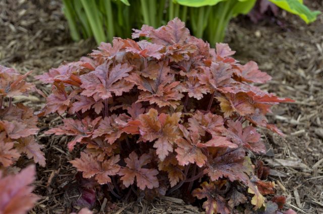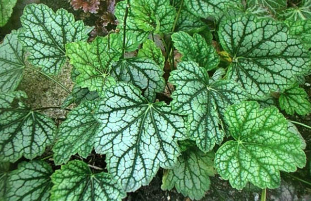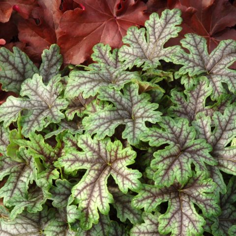 El patrón en las hojas de heykherella le da a la planta un sabor especial.