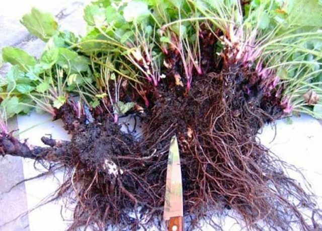 - Con un hacha o un cuchillo, el rizoma se divide en partes para que en cada división haya varios brotes con su propio sistema de raíces.