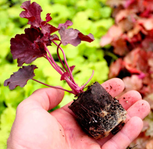Dividir un arbusto es la mejor forma de propagar la heycherella. Se recomienda dividir un arbusto adulto una vez cada 3-4 años, esto no solo aumentará el efecto decorativo de la planta, sino que también evitará su envejecimiento. Esto se puede hacer a finales de julio o principios de agosto. Las principales etapas de este procedimiento son:
