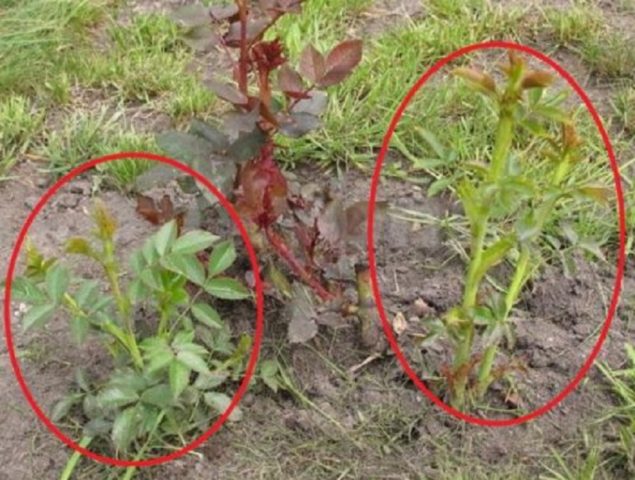 - Incompatibilidad entre portainjerto y vástago. Esto ocurre cuando el cultivar se injerta en una especie de rosa mosqueta de crecimiento agresivo. Es capaz de formar brotes poderosos desde las raíces, lo que inhibe el crecimiento de brotes culturales.