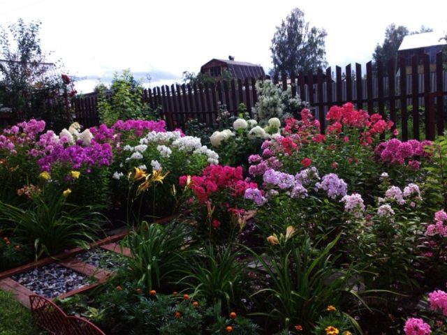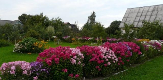 Una cerca viva hecha de phlox multicolor se ve brillante e inusual