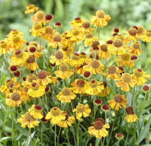 El helenio saludable y bien cuidado durante mucho tiempo agrada con una abundancia de flores brillantes y coloridas.