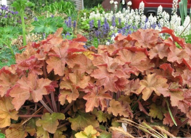 Entre las plantas ampliamente utilizadas en el diseño del paisaje, Heuchera ocupa una posición de liderazgo. En concreto, las variedades Caramel y Mega Caramel se utilizan como decoración:
