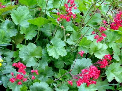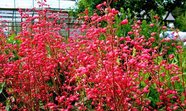 La cultura se ve muy bien en plantaciones individuales y grupales, mixtas o individuales. La heuchera rojo sangre se usa para decorar: