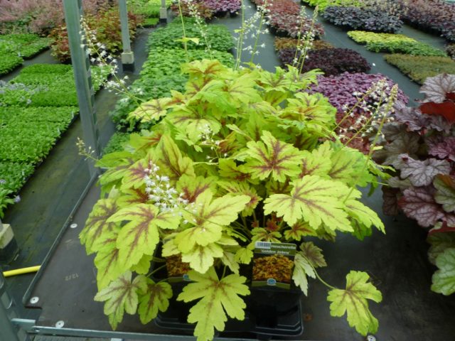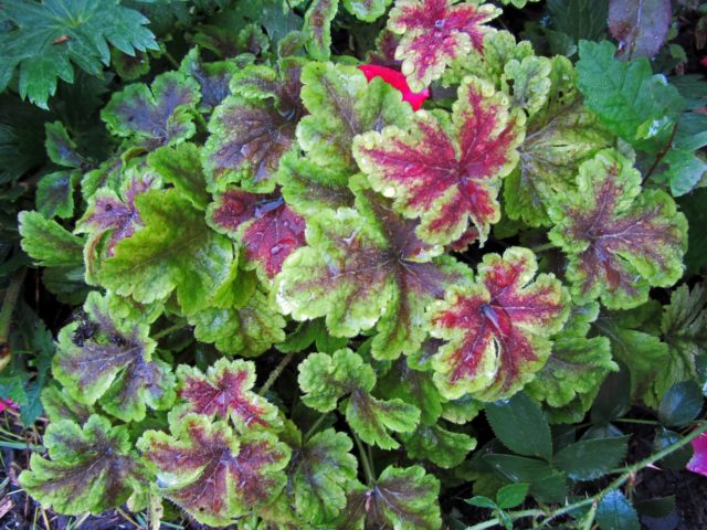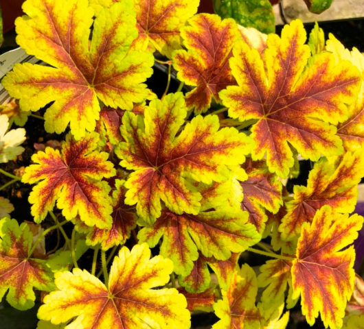 Geicherella "Golden Zebra": una planta de hoja perenne que requiere refugio durante el invierno.