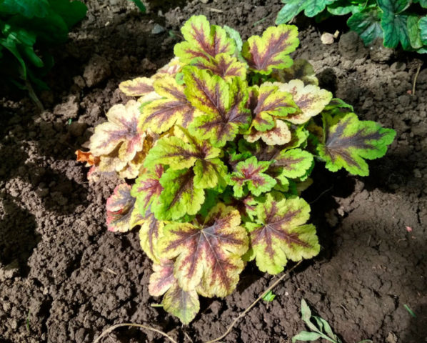 Las plántulas jóvenes de heykherella "Golden Zebra" se plantan en el suelo después de que termina la helada y el clima es cálido. En el carril central, este período comienza a finales de mayo.
