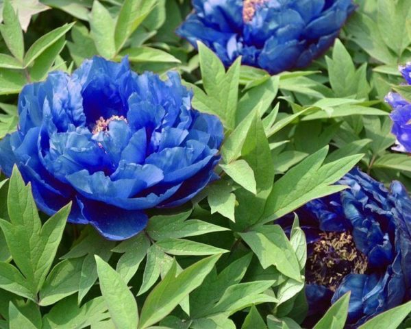 Las plantas con tonalidades azuladas iluminarán cualquier jardín y darán un aroma delicioso. Dado que en su mayor parte se trata de ejemplares poderosos y esparcidos, no se plantan cerca de otras plantas. La distancia entre los arbustos es de al menos 1,5 m Además, las cubiertas del suelo no se colocan debajo de las peonías. El sitio está engrosado solo con bulbos de principios de primavera, que preceden a la floración del cultivo principal.