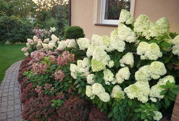 Hydrangea Silver Dollar es una de las variedades más adecuadas para componer composiciones mixborder. Para esto, los jardineros usan más de tres arbustos.
