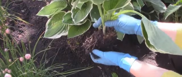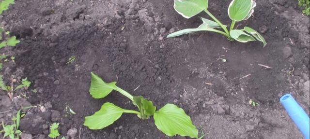 - El hoyo se vierte con agua, se agrega un poco de tierra y se planta la hosta en la sustancia líquida.