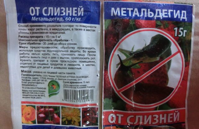 El medicamento se usa inmediatamente después de la detección de rayas de plagas en las hojas de hosta.