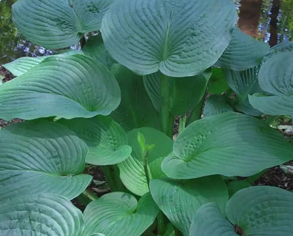 Este anfitrión se caracteriza por un rápido crecimiento. Forma arbustos enormes de hasta 100 cm de alto y unos 180 cm de ancho, las hojas son redondas y densas. Su color es verde azulado. La longitud de las placas es de 42 cm y el ancho de 38 cm El color de las flores es lila pálido.