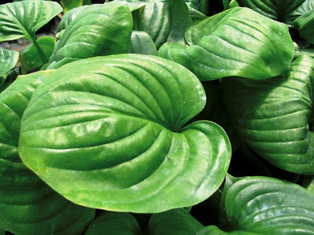 La estructura de las placas de la hosta "Jurassik Park" está arrugada.