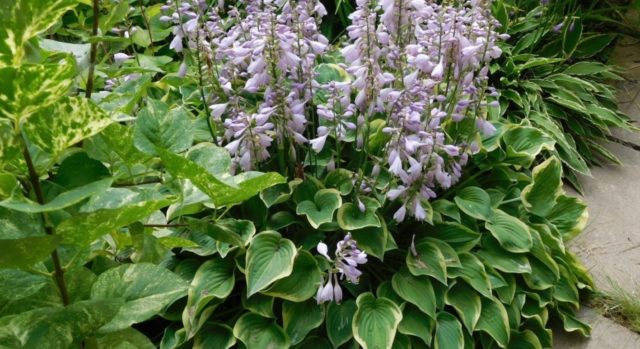 Los huéspedes híbridos "Firn Line" tienen hojas densas. El color de las flores es lavanda claro. Aparecen sobre el follaje en la segunda quincena de julio.