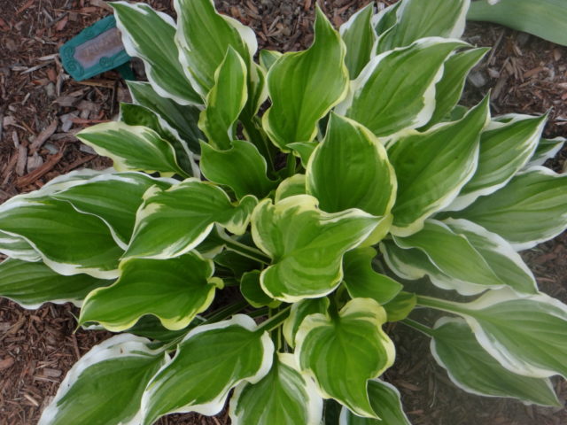 - Suga y Spice... Un arbusto de tamaño mediano de unos 50 cm es interesante porque el borde estrecho y claro de sus hojas verdes es irregular e intermitente, y las hojas están ligeramente onduladas. La planta perenne es similar tanto al plátano como a la hosta de borde blanco.