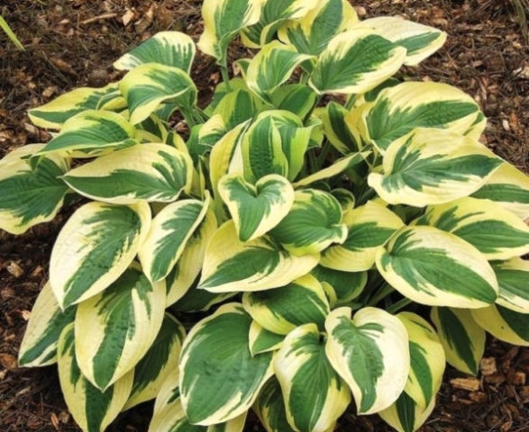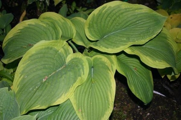 - Libertad... Un arbusto grande de hasta 70 cm con follaje de color verde azulado con un borde amarillo cremoso brillante, las hojas son grandes y densas.