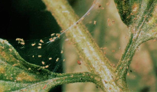 Los ácaros son fáciles de detectar por la abundancia de telarañas en los brotes.