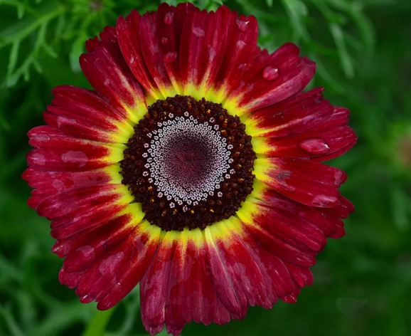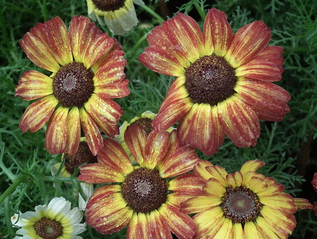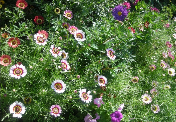 El crisantemo en quilla es originario del noroeste de África, se ha cultivado en jardines desde 1796. Las flores se asemejan a sombrillas de colores del arco iris, complementadas con jugosas hojas caladas. Esta planta anual no tiene pretensiones, florece durante mucho tiempo y magníficamente, se puede cultivar independientemente de las semillas.