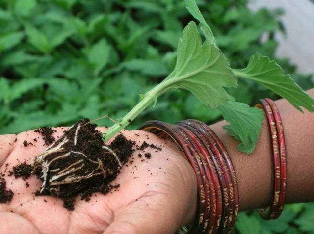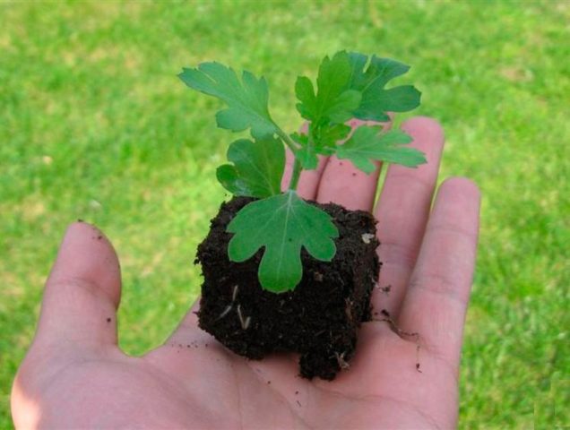 Las plántulas de crisantemo deben trasplantarse a campo abierto con un trozo de tierra.