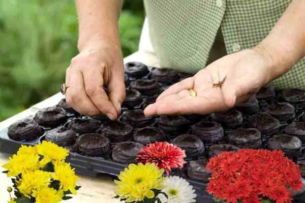 Las semillas de crisantemo pueden ser recolectadas por usted mismo y plantadas el próximo año.