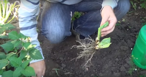 - Se realiza un receso de plantación teniendo en cuenta la altura de la raíz y el grosor de la capa de la mezcla de nutrientes. Los brotes de vegetación deben permanecer al nivel del suelo.