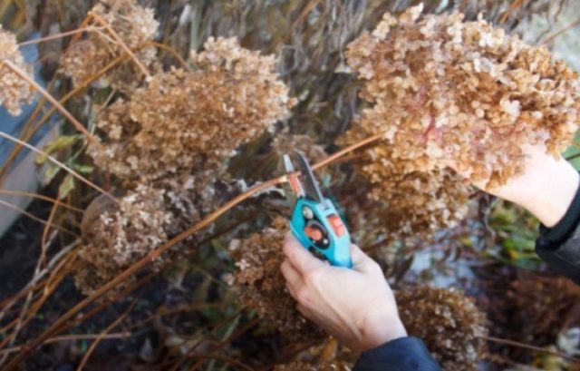 En otoño, la hortensia deja de crecer y no caduca con jugo después de la poda.