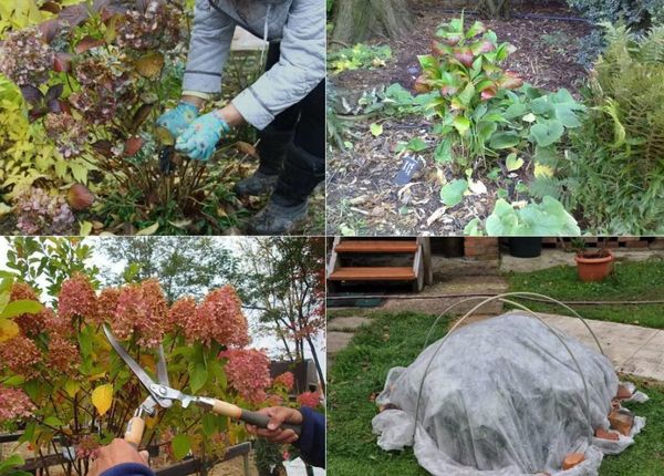 Cuidado de la hortensia paniculata después de la poda de otoño.