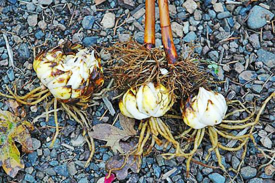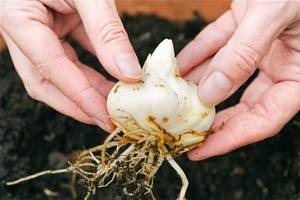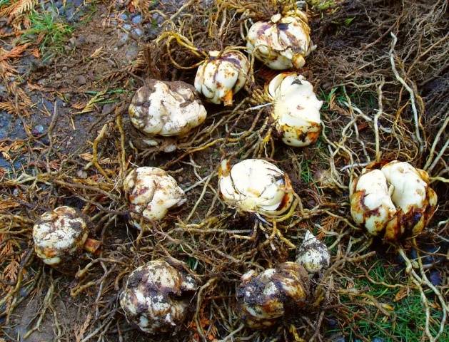 Si, por diversas razones, no puede plantar inmediatamente los bulbos en una nueva ubicación o si desea compartir el material de siembra con sus vecinos, no deje los bulbos al aire libre, ni siquiera por un tiempo breve. Son capaces de secarse muy rápidamente, ya que no tienen caparazón protector, como otros bulbosos. Inmediatamente después de excavar, colóquelos en aserrín húmedo o musgo, en caso de apuro, envuélvalos en un paño húmedo o periódico y envuélvalos en plástico.