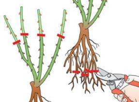 La plantación de rosas comienza con la preparación de las propias plántulas. Los arbustos con un sistema de raíces abierto deben dejarse en un balde de agua durante un día. Si va a plantar rosas en contenedores especiales, entonces no se necesita ninguna preparación. Después de eso, todas las ramas dañadas y secas se cortan de los arbustos. También es necesario quitar las hojas y los propios brotes de la planta, dejando unos 30 centímetros.