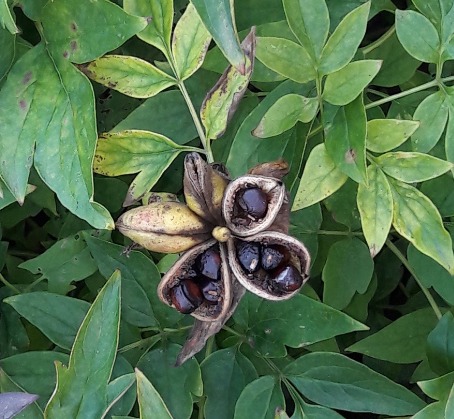 Los frutos de peonía arborescentes son pequeñas vainas de semillas que aparecen a mediados de agosto.