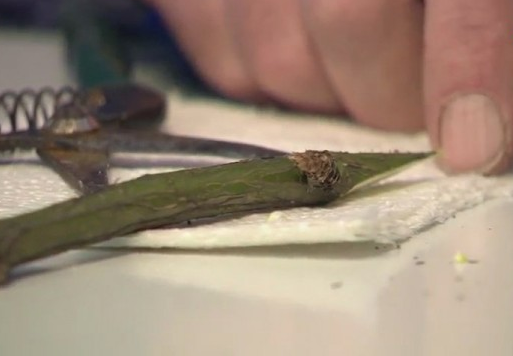 El corte oblicuo inferior se realiza directamente debajo de la base de la hoja.