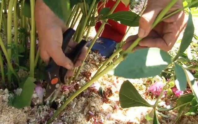 - Los tallos se dividen en 2-3 esquejes con la ayuda de unas tijeras de podar, cada uno de ellos debe tener al menos 2 entrenudos.