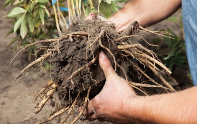 - propagación por esquejes de raíz, las características de la variedad cuando se usa el método se conservan en algunos híbridos y peonía medicinal, por lo que el método es especialmente popular;