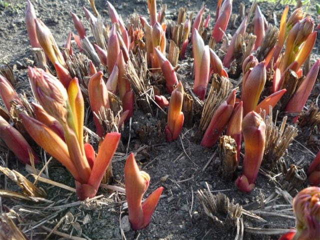Después de plantar, las yemas de crecimiento de la delenka deben estar al ras del suelo o no más profundas de 5 cm, de lo contrario será difícil que la peonía crezca. La planta podrá florecer el próximo año con una siembra exitosa o después de 3 años en caso de crecimiento lento.