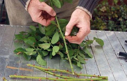 - los brotes de rosas deben cortarse en trozos, dejando 3-5 brotes bien desarrollados en cada uno de ellos;