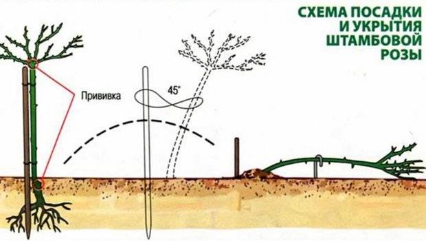 En primer lugar, este trabajo debe realizarse de forma paulatina, acostumbrando el cañón a una nueva posición. Se cava un surco en la dirección de la pendiente de la planta, tratando de no dañar el sistema de raíces. aunque, según los jardineros experimentados, esto no daña las plantas, ya que las plantas estándar harán crecer con éxito el sistema de raíces en la primavera. Luego doblamos ligeramente la rosa estándar y la fijamos con algún material, por ejemplo, con grapas, para que no vuelva a tomar una posición vertical. Al día siguiente lo volvemos a doblar, y así sucesivamente hasta que la planta se presiona contra el suelo.