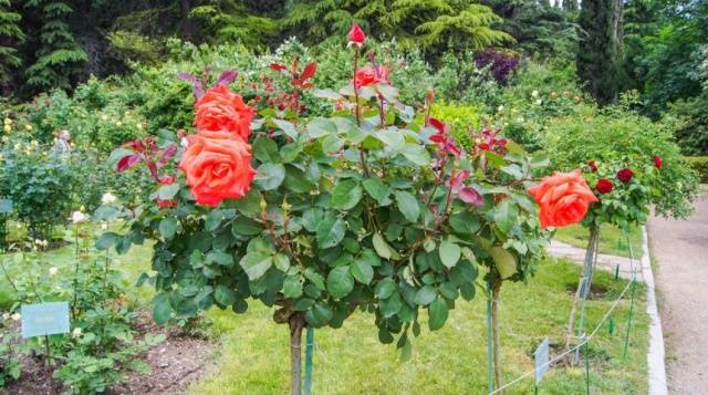 - No es deseable plantar rosas estándar junto a los edificios, porque habrá problemas al colocar la corona para el invierno.