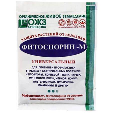 - Antes de plantar, trate el suelo con Fitosporin-M, que suprime el desarrollo de infecciones bacterianas y fúngicas.Sigue las instrucciones. La droga está disponible en diferentes formas;