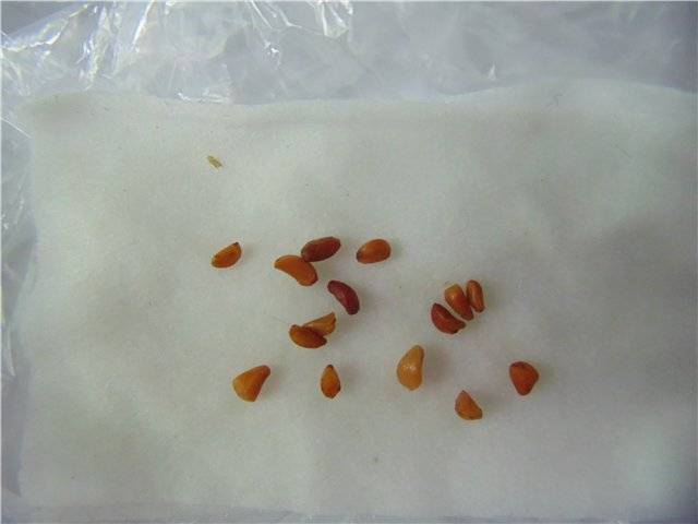 - Luego se sacan y se colocan sobre almohadillas de algodón humedecidas o algún tipo de material no tejido. Desde arriba, las semillas de rosa también se cubren con material y se colocan en una bolsa de plástico. Es muy conveniente usar bolsas con cierre de cremallera, retienen la humedad el mayor tiempo posible. Los paquetes con semillas se colocan en el refrigerador en el estante inferior, donde permanecerán durante aproximadamente 2 meses antes de que aparezcan los primeros brotes;