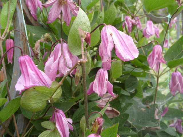- La clemátide alta no tolera los vientos fuertes, incluso cuando está fijada en un soporte. Por lo tanto, para Alyonushka, debe seleccionar áreas que estén protegidas de las ráfagas de viento.