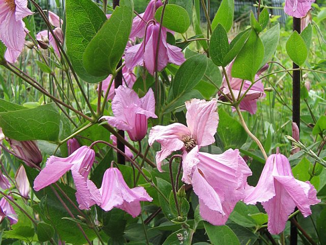 Dado que la clemátide de esta variedad tiene tallos muy largos pero delgados, no puede crecer verticalmente hacia arriba sin apoyo. Al mismo tiempo, la planta tampoco puede arrastrarse a lo largo del soporte, la clemátide Alyonushka debe atarse a una pared, cerca o glorieta, o colocarse cuidadosamente sobre un soporte. La planta perenne crece bastante rápido, por lo que se requiere una liga o un cambio de tallos varias veces por temporada.