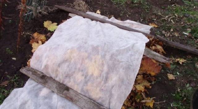 El refugio se lleva a cabo en noviembre, cuando el suelo comienza a congelarse y la temperatura del aire se establece entre -5 ° C ... -7 ° C. Se cubren con tierra, turba desgastada y se agregan ramas de abeto en la parte superior. En la primavera, el refugio se retira gradualmente.