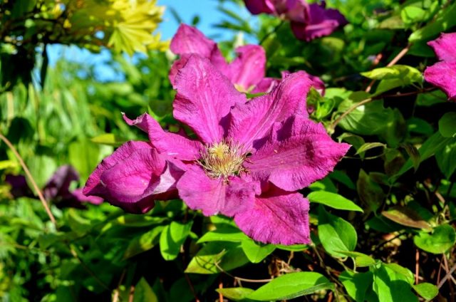 - El sitio de plantación debe protegerse de las corrientes de aire, Clematis Ernest Markham reacciona mal a ellas, los vientos fuertes rompen los brotes y cortan las flores;