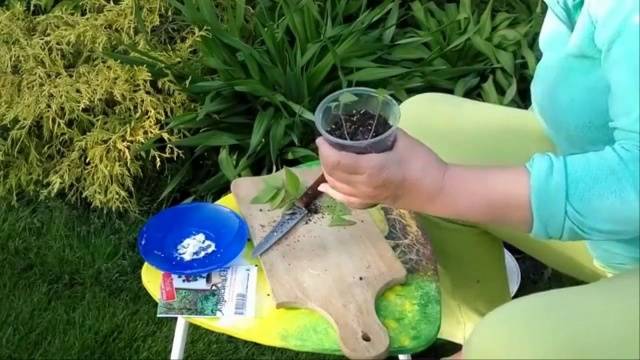 - Esquejes - la forma más fácil de obtener una gran cantidad de plantas nuevas. En arbustos de clemátide de 3-4 años, antes de la floración, corte esquejes de 6 cm con dos o tres yemas del medio del arbusto. Después de procesar el corte con Kornevin, plantarlo en una mezcla de arena y turba e hidratar constantemente.