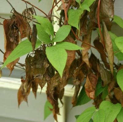 De las enfermedades, la más peligrosa para la clemátide es el marchitamiento o el marchitamiento.