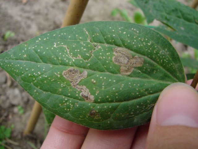 El hongo infecta la clemátide en forma de óxido, que se manifiesta por protuberancias anaranjadas en el follaje y las ramas. Para el tratamiento y la prevención, es necesario practicar rociar los arbustos con una solución de líquido de Burdeos u otras preparaciones de cobre. La concentración de la solución está dentro del 1-2%.