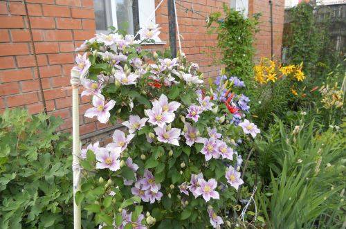 - A cierta distancia de la zona de la raíz de la clemátide, se pueden plantar plantas anuales bajas, lo que protegerá bien las raíces del calor o la sequedad excesiva.
