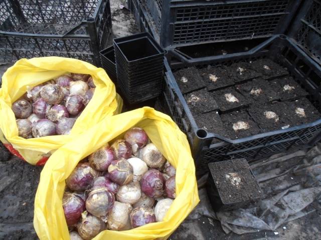 - el diámetro del bulbo debe ser mediano, no más de 4-6 cm (en variedades dobles y amarillas, por regla general, los bulbos son más pequeños);