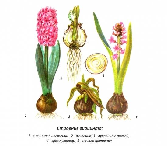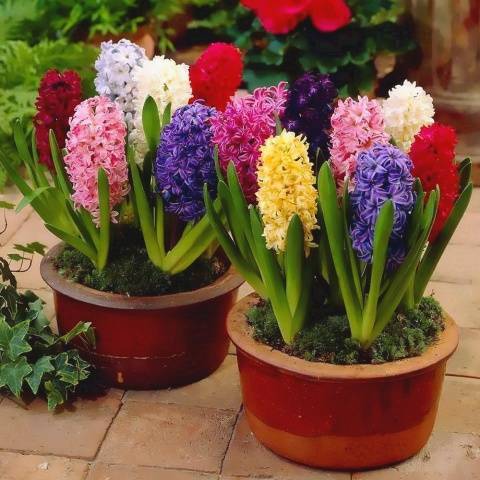 - No se puede fertilizar los jacintos con materia orgánica fresca (ni en el momento del trasplante, ni más tarde), ya que esto a menudo conduce al desarrollo de infecciones fúngicas que representan un gran peligro para las plantas bulbosas.